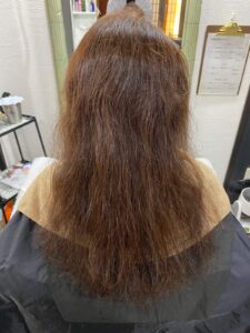 ※最低限の強さの薬剤を使用するため、アイロンの工程でいかに綺麗にできるかが最重要ポイント。
